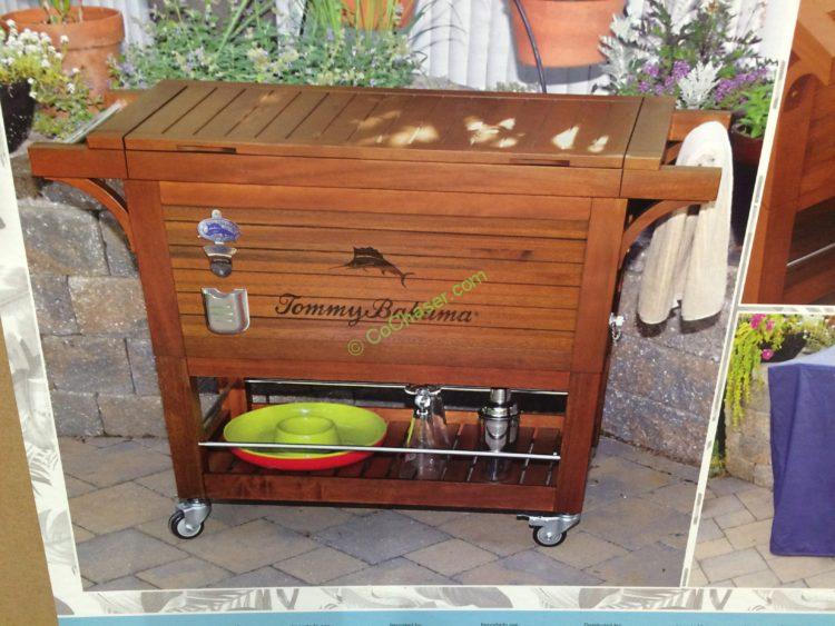 This tommy bahama rolling party cooler has beautifully crafted 100 fsc eucalyptus wood body.