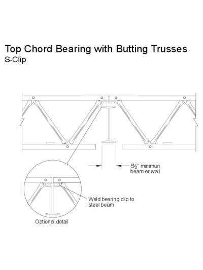 Top chord bearinga floor truss support condition in which the truss load is transferred to the bearing or support through the top chord and 4x4 block end detail.